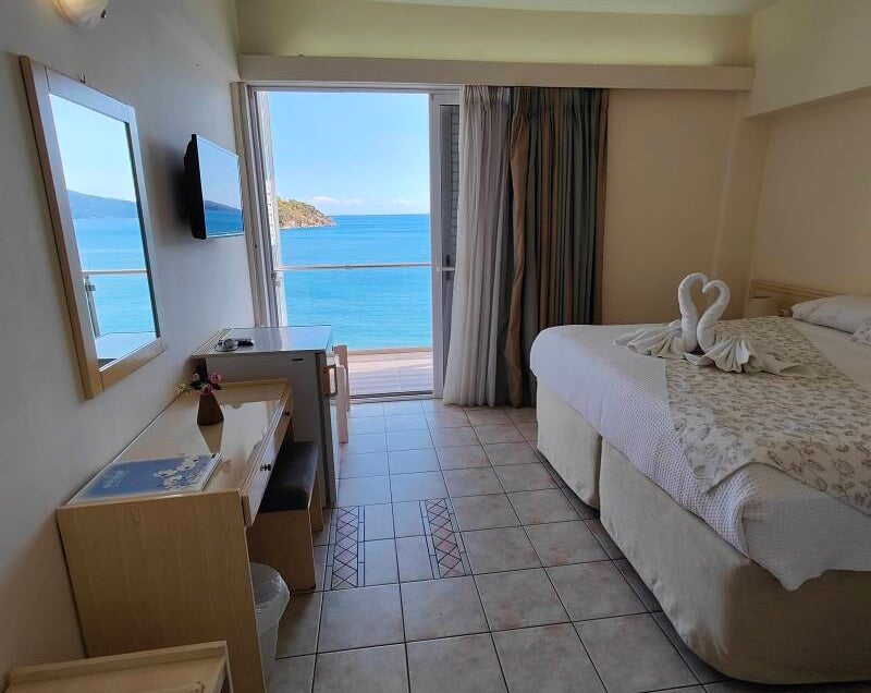 Standard double rooms are fully equipped rooms with sea views. An extra normal bed may added so these rooms can be easily transformed to triple rooms. All rooms have